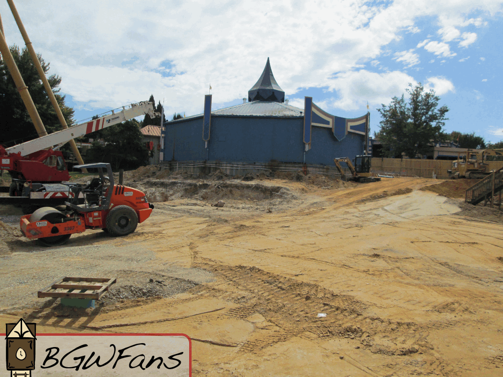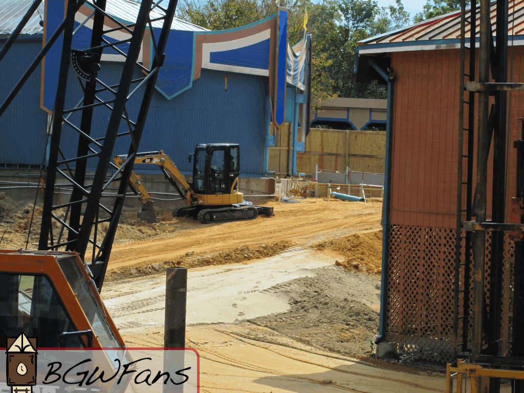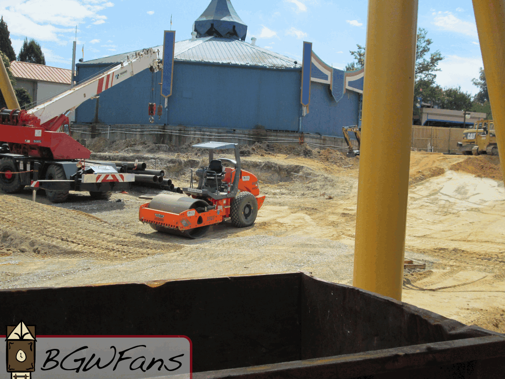 Bit of a closer look at the same area from a different angle. Note the back side of the construction fence